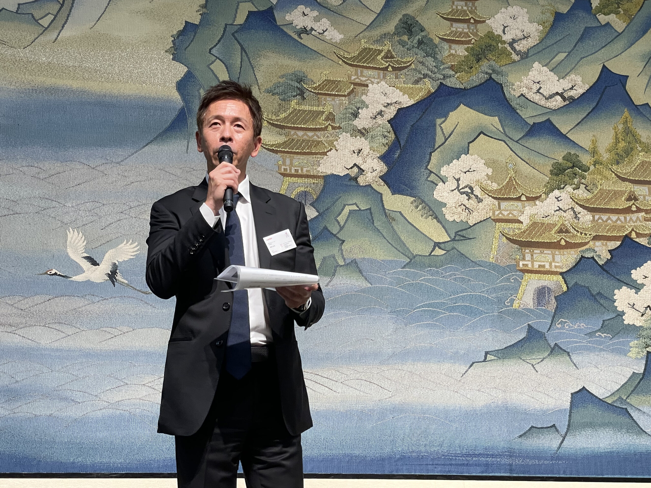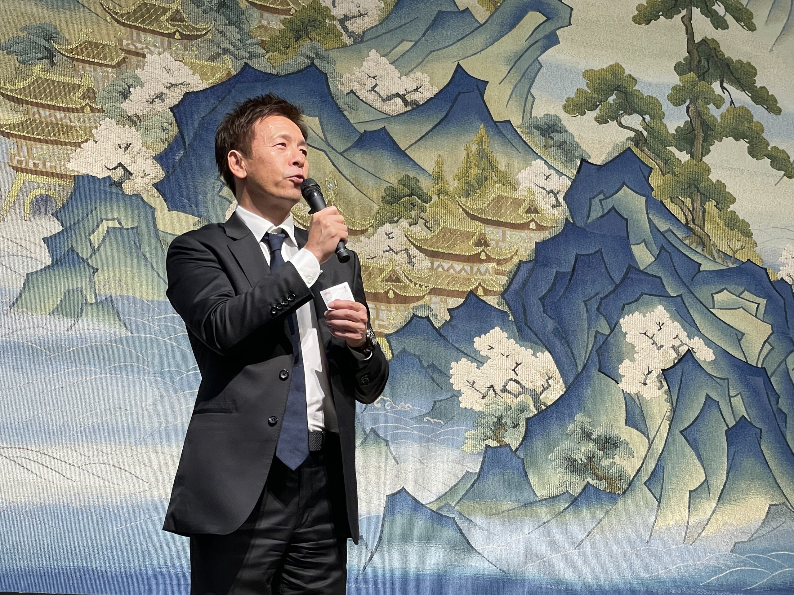 納会にて岡田社長が各テーブルに周ってるところです^^